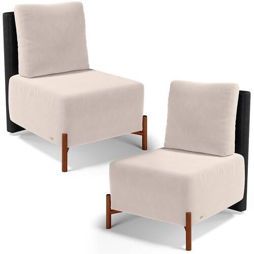 Kit 02 Poltronas Decorativas Sala De Estar Living Hungria L02 Couríssimo Preto Suede Bege - Lyam