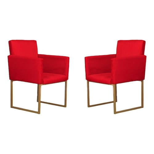 Kit 02 Poltronas Decorativas Klara Pés Base Ferro Dourada