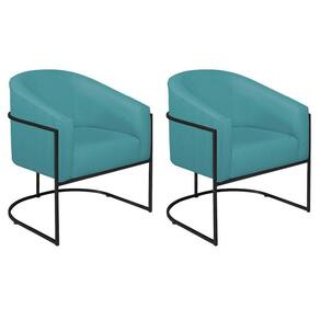 Kit 02 Poltronas Decorativas Sala De Estar Recepção Luiza Base De Ferro Preto Suede - Doce Sonho Móveis Cor Azul Turquesa