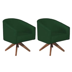 Kit 02 Poltronas Decorativas Sala De Estar Recepção Luiza Base Giratória De Madeira Suede - Doce Sonho Móveis Cor Verde
