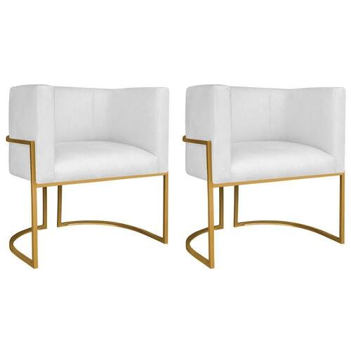 Kit 02 Poltronas Decorativas Luna Base De Ferro Dourado Suede Cor Branco