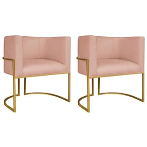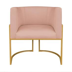 Kit 02 Poltronas Decorativas Luna Base De Ferro Dourado Suede Rosê - Blush