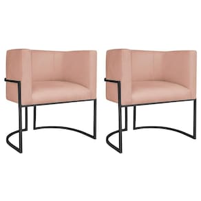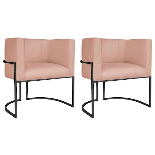 Kit 02 Poltronas Decorativas Luna Base De Ferro Preto Suede Cor Rosê