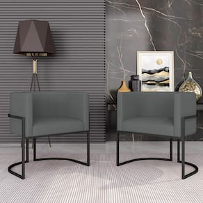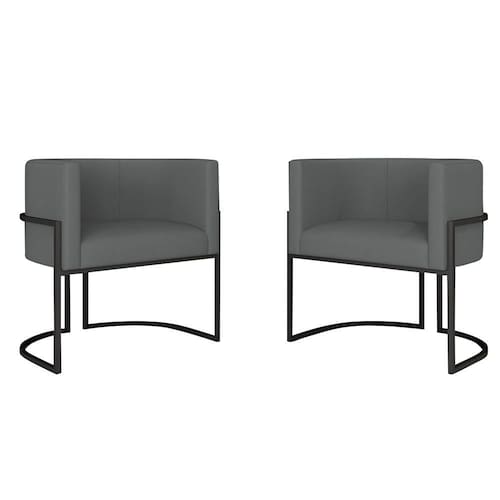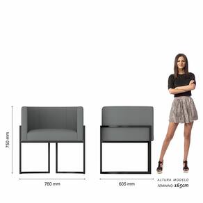 Detalhes Técnicos das Poltronas - Assento e Encosto Tapeçados, Estofados e Fixos - Espuma do Assento e do Encosto: D20 - Tonalidade: Preto Fosco (estrutura)/Suede Cinza (estofado) - Material: Metalon - Medida Poltrona: A: 75CM x L: 76CM x P: 60,5CM - Medida do chão até o assento: 48,5cm de altura - Poltrona suporta até 120KG - Montagem: Difícil