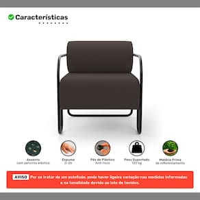 Seu encosto possui almofada solta 100% em fibra siliconada, oferecendo maciez e aconchego. O assento fixo, confeccionado com espuma D-26, manta acrílica e percintas elásticas, garante suporte e conforto prolongado. O revestimento em Veludo confere textura agradável e aparência sofisticada, ideal para compor diferentes estilos de decoração.