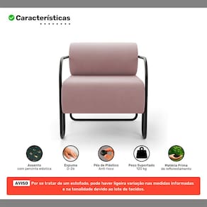 Seu encosto possui almofada solta 100% em fibra siliconada, oferecendo maciez e aconchego. O assento fixo, confeccionado com espuma D-26, manta acrílica e percintas elásticas, garante suporte e conforto prolongado. O revestimento em Veludo confere textura agradável e aparência sofisticada, ideal para compor diferentes estilos de decoração.