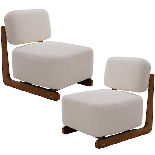 SupplierSimpleName: Kit 02 Poltronas Decorativas Orgânica Sala Living Pés Madeira Luiza L02 Bouclê Creme - Lyam Decor