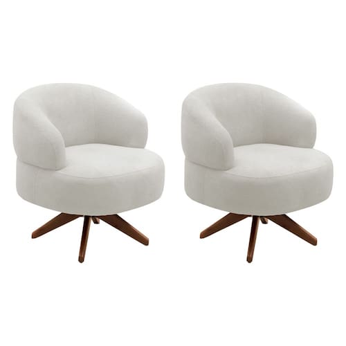Kit 02 Poltronas Decorativas Orgânicas Living Have Base Giratória Bouclê Off White - Desk Design