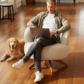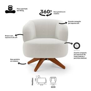 Poltrona Decorativa Orgânica Living Have Base de Madeira Giratória: conforto, design e funcionalidade em um único móvel. Ideal para quem busca um toque sofisticado e acolhedor em ambientes modernos. Desenvolvida com estrutura em madeira de eucalipto tratada e reforços em MDF, a Poltrona Have oferece resistência e estabilidade. O assento com espuma D-26 e molas espirais garante conforto prolongado, enquanto o encosto em espuma soft e os braços em espuma D-20 proporcionam maciez e apoio ergonômico. As percintas elásticas asseguram durabilidade superior e a base giratória em madeira adiciona mobilidade e elegância. O acabamento com costura rebatida confere ao design um visual moderno e refinado.