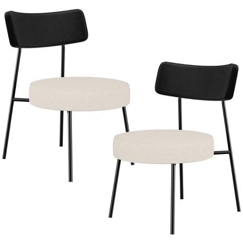 Kit 02 Poltronas Decorativas Para Sala De Estar Base Fixa Londres L02 Couríssimo Preto Linho Bege - Lyam