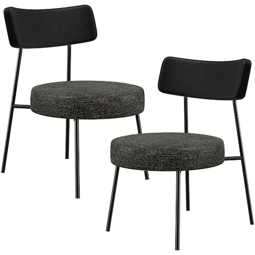 Kit 02 Poltronas Decorativas Para Sala De Estar Base Fixa Londres L02 Couríssimo Preto Linho Chumbo - Lyam