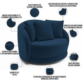Indicado para uso residencial, sua limpeza deve ser feita com pano umedecido em água limpa, sem esfregar, não utilizar produtos abrasivos, desengordurantes, álcool ou solvente. Nunca sentar nos braços ou encosto do produto.
