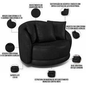 Indicado para uso residencial, sua limpeza deve ser feita com pano umedecido em água limpa, sem esfregar, não utilizar produtos abrasivos, desengordurantes, álcool ou solvente. Nunca sentar nos braços ou encosto do produto.