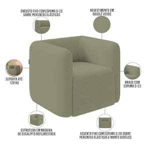 ProductWeight: 30 kg | Largura: 80 cm | ProductContents: 02 Poltronas | MaterialFamily: Madeira, Espuma | Color: Verde | Fabricante: Lyam Decor | Peso: 30 kg | ColorFamily: Verde | Profundidade: 70 cm | Model: Peônia | ProductWarranty: 90 dias após o do produto | Altura: 75 cm | Estilo: Moderno | OriginState: PR | OriginCountry: | ColorSimple: Verde | Cor: Verde | ColorSupplier: Verde | ProductWidth: 80 cm | SizeDescription: Altura: 72 cm x Largura: 80 cm x Profundidade: 72 cm | ProductHeight: 72 cm | ProductInstructions: Produto para uso em ambiente interno, nao devendo ficar exposto ao sol, calor e umidade excessivos. | Tipo de produto: Poltrona | Formato do sofá: NA | Material de enchimento do encosto: Encosto fixo com espuma D-23, sobre percintas elásticas. | Densidade da espuma do assento: Assento fixo com espuma D-26 sobre percintas elásticas e manto acrílico. | Mecanismo de abertura do produto: na | Requer montagem: Não | Desenho do tecido: Liso | Material: Bouclê, Madeira de eucalipto, Espuma D-26 e D-23, Percintas elásticas e Manta acrílica | Unidades por kit: 2 | SupplierSimpleName: Kit 02 Poltronas Decorativas Para Sala de Estar Fixa Living Peônia K01 Bouclê Verde - Lyam Decor | Peso máximo suportado: 120 kg | Material do estofamento: Bouclê e Espuma | ProductLength: 72 cm | Linha: Sala de Estar | Cor dos pés: Preto | Orientação do Sofá: na