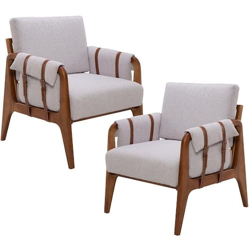 Braços com cintas de couro decorativas.