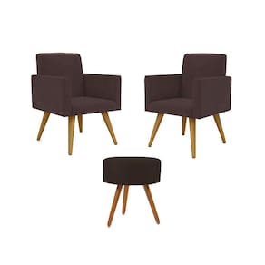 Kit 02 Poltronas Decorativas + Puff Decorativo Redondo Sala Cor:marrom