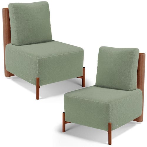 Kit 02 Poltronas Decorativas Sala de Estar Living Hungria L02 Couríssimo Camel Bouclê Oliva - Lyam - Verde Claro