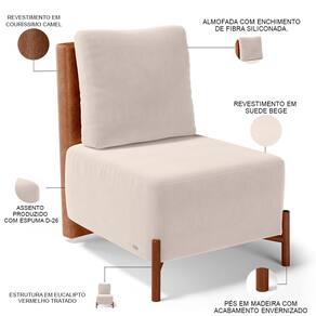 Revestimento do encosto em Couríssimo na cor Camel do assento em Suede na cor Bege, de alta qualidade.