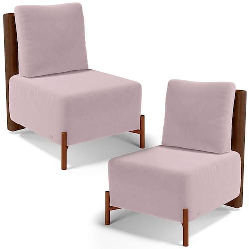 Revestimento do encosto em Couríssimo na cor Marrom do assento em Suede na cor Rosê, de alta qualidade.