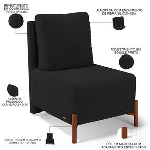 Revestimento do encosto em Couríssimo na cor Preto do assento em Bouclê na cor Preto, de alta qualidade.