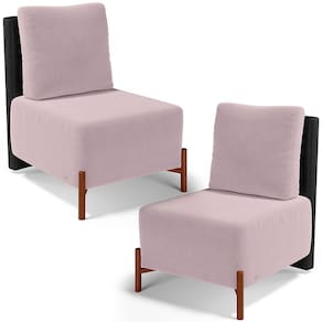 Kit 02 Poltronas Decorativas Sala de Estar Living Hungria L02 Couríssimo Preto Suede Rosê - Lyam