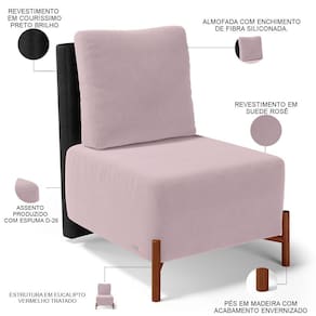 Revestimento do encosto em Couríssimo na cor Preto do assento em Suede na cor Rosê, de alta qualidade.