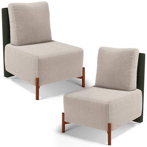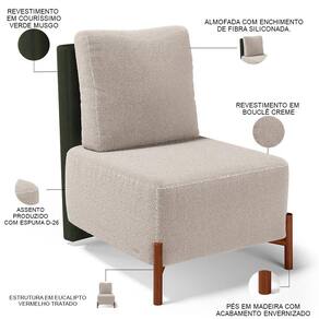 Revestimento do encosto em Couríssimo na cor Verde do assento em Bouclê na cor Creme, de alta qualidade.