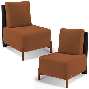 Revestimento do encosto em Couríssimo na cor Preto do assento em Bouclê na cor Terracota, de alta qualidade.