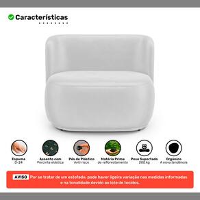 Estrutura: Madeira de Eucalipto; Estofamento: Espuma D-24; Revestimento: Couríssimo Sintético (PU); Pés: PlásticoVendido e entregue por Abmaza