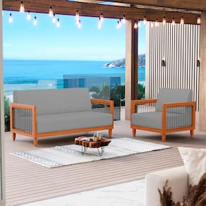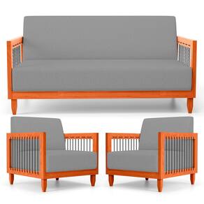 Que tal o Conjunto de Poltronas e Sofá Varanda Samoa Madeira Maciça com Cordas Náutica?