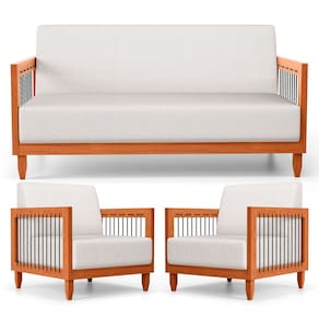 Que tal o Conjunto de Poltronas e Sofá Varanda Samoa Madeira Maciça com Cordas Náutica?