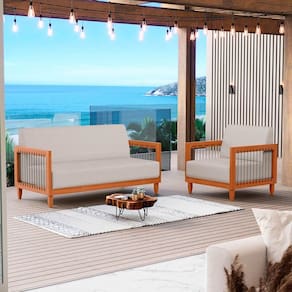 Que tal o Conjunto de Poltronas e Sofá Varanda Samoa Madeira Maciça com Cordas Náutica?