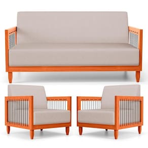 Que tal o Conjunto de Poltronas e Sofá Varanda Samoa Madeira Maciça com Cordas Náutica?