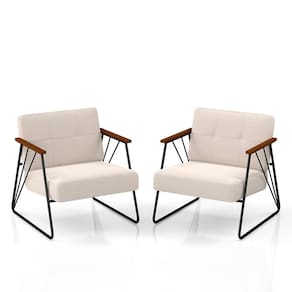 Detalhes Técnicos das Poltronas - Assento e Encosto Tapeçados, Estofados e Fixos - Espuma do Assento e do Encosto: D20 - Tonalidade Estrutura: Preto Fosco -Tonalidade Estofado: Bouclé Off White - Material: Metalon - Medida Poltrona: A:78CM x L:71CM x P:88CM - Poltrona suporta até 120KG