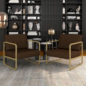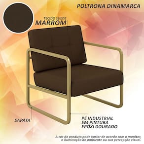 Kit 02 Poltronas Estofadas Dinamarca Industrial Dourado/marrom - M.a
