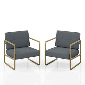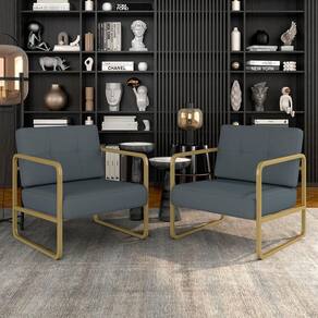 Kit 02 Poltronas Estofadas Dinamarca Industrial Dourado/sd Cinza - M.a