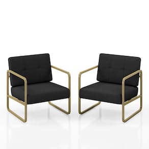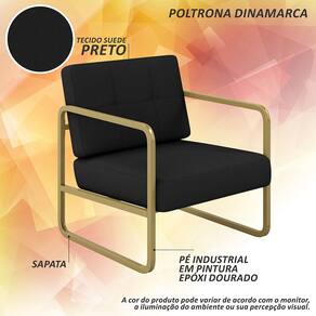 Detalhes Técnicos das Poltronas - Assento e Encosto Tapeçados, Estofados e Fixos - Espuma do Assento e do Encosto: D20 - Tonalidade Estrutura: Dourado - Tonalidade Estofado: Suede Preto - Material: Metalon - Medida Poltrona: A:80CM x L:69CM x P:68CM - Altura do assento ao chão: 39,5 cm - Poltrona suporta até 120KG
