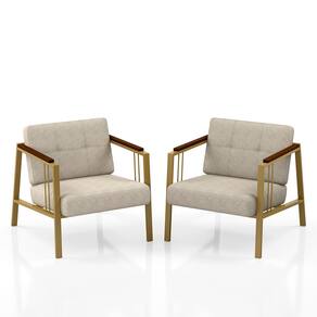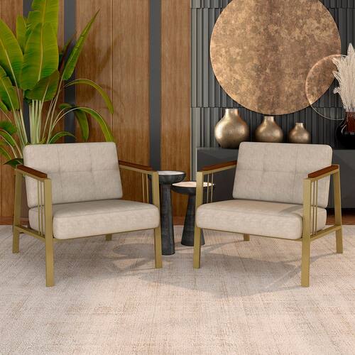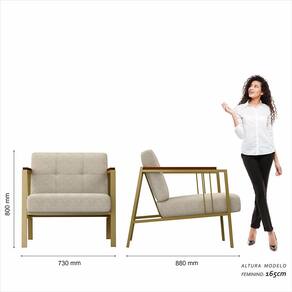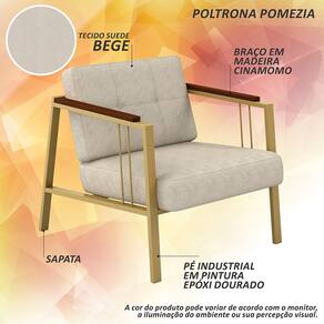 Detalhes Técnicos das Poltronas - Assento e Encosto Tapeçados, Estofados e Fixos - Espuma do Assento e do Encosto: D20 - Tonalidade Estrutura: Dourado -Tonalidade Estofado: Camurça Bege - Material: Metalon - Medida Poltrona: A:80CM x L:73CM x P:88CM - Medida Altura do Assento ao chão: 42,10 cm - Poltrona suporte até 120KG