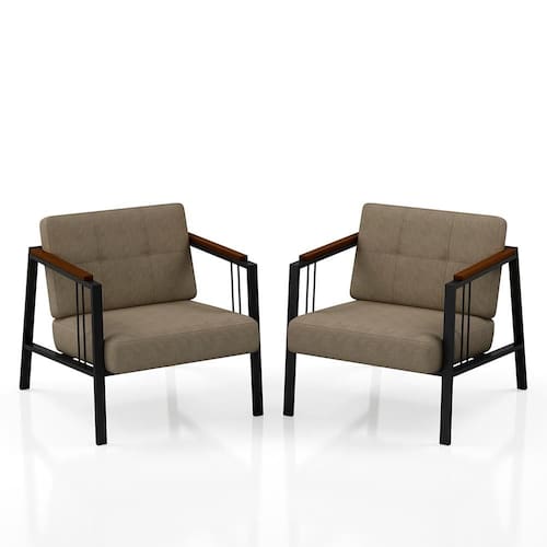 Detalhes Técnicos das Poltronas - Assento e Encosto Tapeçados, Estofados e Fixos - Espuma do Assento e do Encosto: D20 - Tonalidade Estrutura: Preto Fosco -Tonalidade Estofado: Suede Capuccino - Material: Metalon - Medida Poltrona: A:80CM x L:73CM x P:88CM - Poltrona suporta até 120KG Conteúdo da Embalagem - 02 Poltrona - Manual de Montagem - Acessórios para Montagem