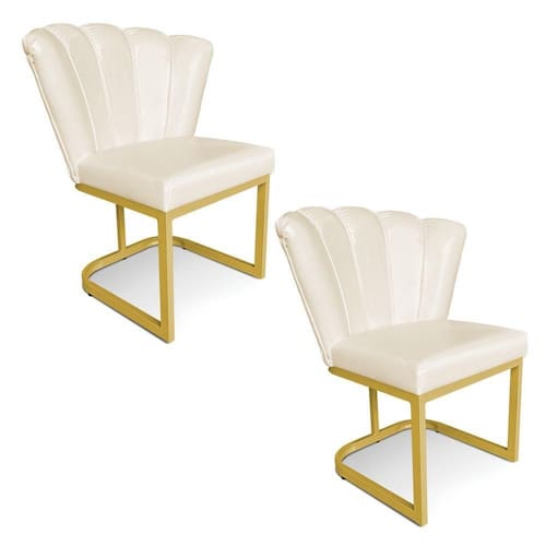 Kit 02 Poltronas Flor Corano Base Metálica Industrial Dourado - Pallazio Cor Bege