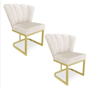 Kit 02 Poltronas Flor Veludo Base Metálica Industrial Dourado - Pallazio Cor Bege