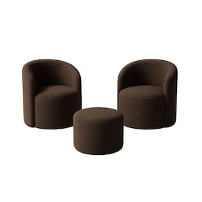 Kit 02 Poltronas Gaia + Puff Living Decorativo Curvo Orgânico Boucle Marrom - Montanaris Decor