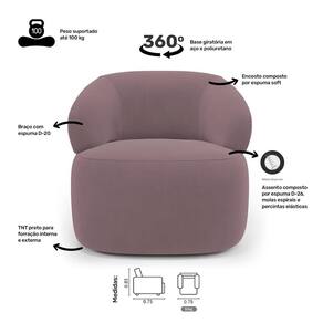 As percintas elásticas no assento aumentam a resistência e durabilidade, enquanto os braços, com espuma D-20, oferecem suporte adicional. A base em aço giratório e poliuretano da Poltrona Glee não só permite uma rotação suave, mas também acrescenta um toque moderno ao seu espaço.