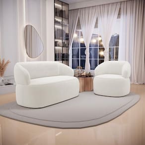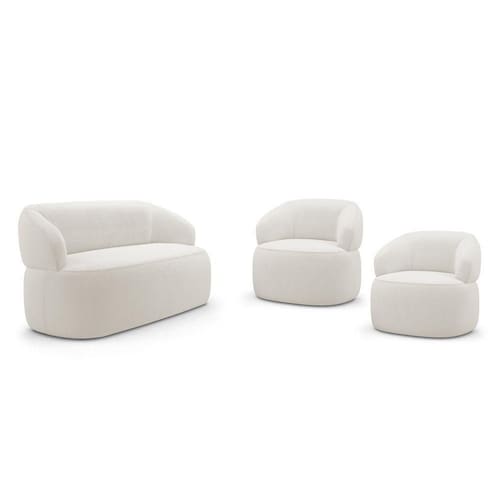 Kit 02 Poltronas Giratória E 01 Sofá Orgânico Glee 03 Lugares 170cm Bouclê Off White - Abmaza