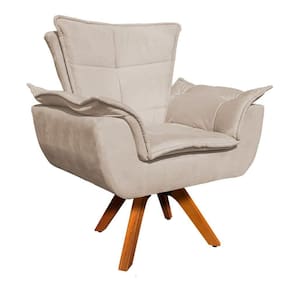 Kit 02 Poltronas Decorativas Gran Opala Base Giratória Madeira Suede Bege - D'Rossi