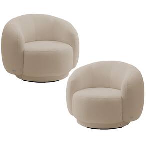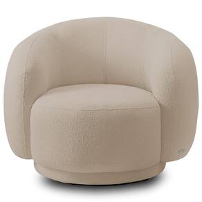 Características: Estrutura em madeira de lei (eucalipto), tratada e aparelhada com reforços de cantoneiras e chapas em compensado. Revestimento em tecido Bouclê de alta qualidade na cor Creme. Assento fixo com espuma D-28 soft, molas espirais e percintas elásticas de alta resistência. Encosto fixo com espuma D-18 soft, mola zig zag. Braços com espuma D-18 soft. Base giratória. Design orgânico para uso em diversos ambientes. Peso suportado: Até 120 kg.