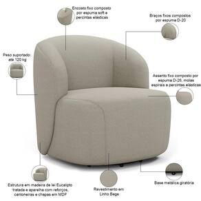 Color: Bege | ColorSupplier: Bege | Formato do sofá: Orgânico | ProductContents: 02 Poltronas | Largura: 75 cm | ProductWeight: 70 kg | Cor: Bege | Cor dos pés: Preto | Orientação do Sofá: Linear | OriginState: PR | Requer montagem: Não | ColorSimple: Bege | Densidade da espuma do assento: D-26 | Mecanismo de abertura do produto: na | Tipo de produto: Poltrona Giratória | Linha: Sala de Estar, Living | Fabricante: Lyam Decor | Peso: 70 kg | MaterialFamily: Madeira de Eucalipto | Desenho do tecido: Liso | Model: Heidy | ColorFamily: Bege | Material do estofamento: Linho | Material: Madeira de Eucalipto, Cantoneiras, Chapas em MDF | Unidades por kit: 2 | Estilo: Moderno | Peso máximo suportado: 120 kg | Material de enchimento do encosto: Espuma Soft | OriginCountry: Brasil | ProductLength: 72 cm | Profundidade: 72 cm | Quantidade de Caixas de embalagem: 1 | ProductHeight: 75 cm | ProductWarranty: 90 dias após o recebimento do produto | ProductWidth: 75 cm | Altura: 75 cm | ProductInstructions: Produto para uso em ambiente interno, nao devendo ficar exposto ao sol, calor e umidade excessivos. | SizeDescription: Altura: 75 cm x Largura: 75 cm x Profundidade: 72 cm | SupplierSimpleName: Kit 02 Poltronas Giratória Orgânica Para Sala Living Heidy F04 Linho Bege - Lyam Decor