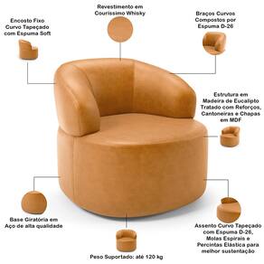 Revestimento em tecido Couríssimo de alta qualidade na tonalidade Whisky.