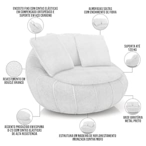 Seja para adicionar assento extra na sala de estar ou para dar um toque de charme no living, escritório e até mesmo quarto, essa poltrona redonda proporciona conforto e bem-estar, enquanto agrega sofisticação e modernidade; afinal é um estofado bem estruturado com materiais alto padrão. Tudo isso para gerar conforto para você e sua família em uma peça única feita com todo cuidado e observada nos detalhes para superar as suas expectativas! Adquira o seu!
