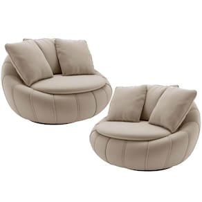 SupplierSimpleName: Kit 02 Poltronas Giratórias Para Sala de Estar Kira M03 Veludo Bege - Lyam Decor